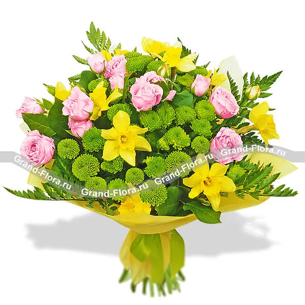 Весенний бриз - букет из нарциссов и хризантем