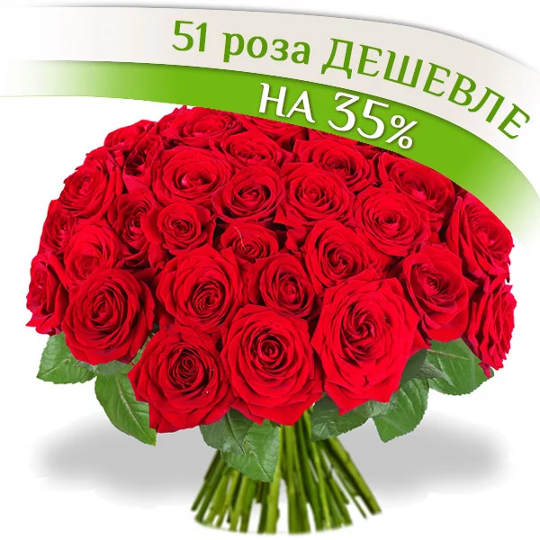 51 роза: роза красная - 51 шт. (высота розы - 50 см).