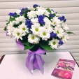 Искал букет с ромашками, нигде не мог найти. Когда позвонил в службу, мне пояснили, что в это время года ромашка не поступает в магазины, но кустовые хризантемы ничем не отличаются от ромашки. Выбрал этот букет в люксовом варианте, смотрится очень достойно. Рекомендую.